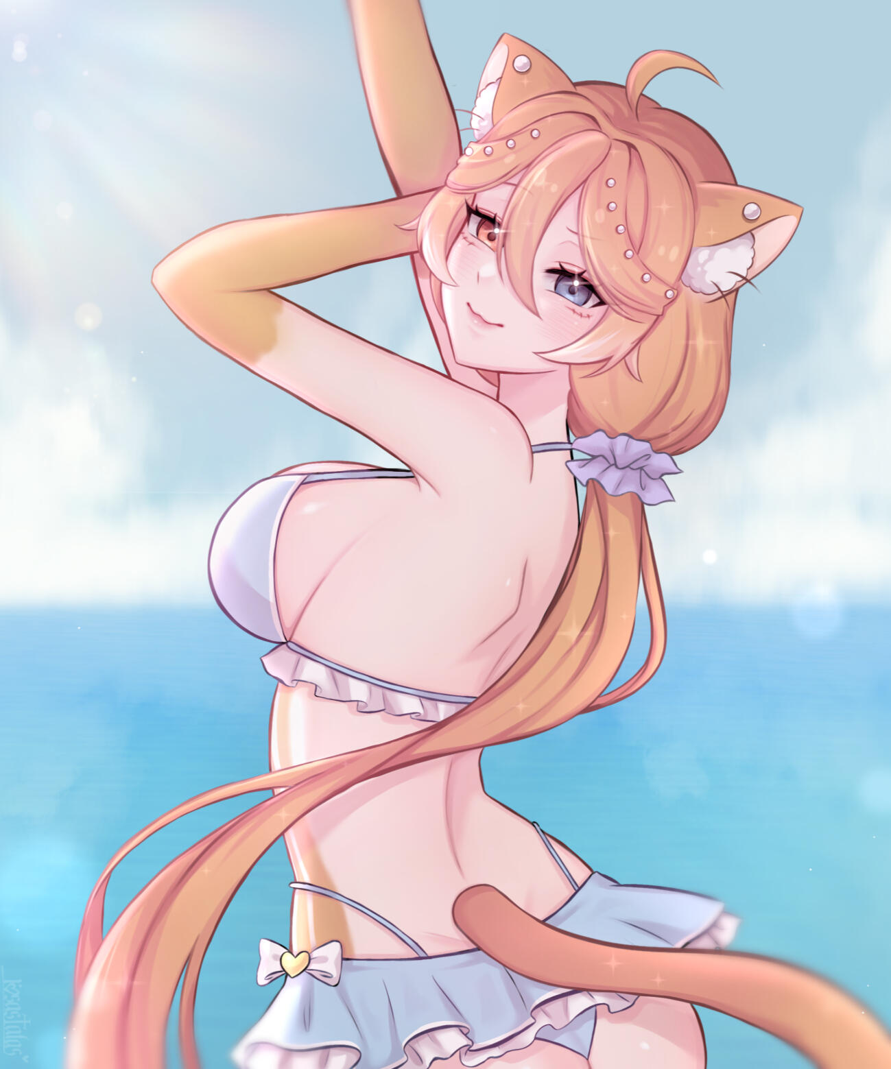 | Hair, facial expression, top, and skin color are customizable. You can choose the background; beach / bedroom / gradient color. Check my VGen for slots~ |
